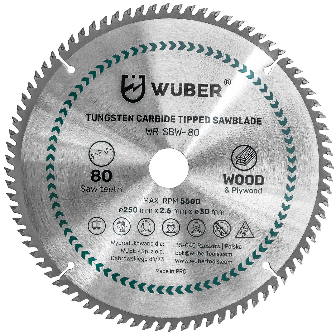 „Wuber“ 250 x 30 mm 80 dantų pjūklo diskas su kietmetalio dantukais.