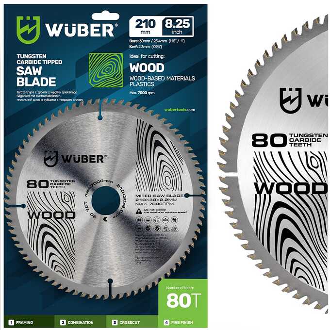 WUBER 210x30mm 80T karbido dantukais pjūklo medienai.