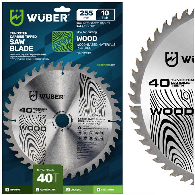 WUBER 255x30mm 40T karbido dantukais pjūklo diskas medienai: