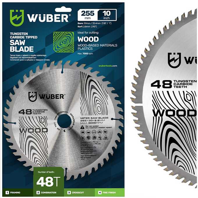 WUBER 255x30mm 48T karbido dantimis pjaustytas pjūklo diskas medienai. Šis