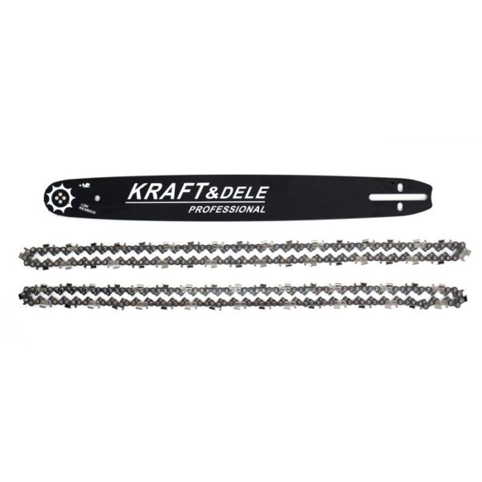Rinkinį sudaro patvari pjovimo juosta ir dvi aukštos kokybės grandinės. Pjovimo juosta tinka įvairių gamintojų pjūklams, tokiems kaip Stihl, Husqvarna, Alpina, Kraft&Dele ir kt., kurie naudoja 3/8″ žingsnio grandines su 1,5 mm pločio vedamaisiais nareliais.