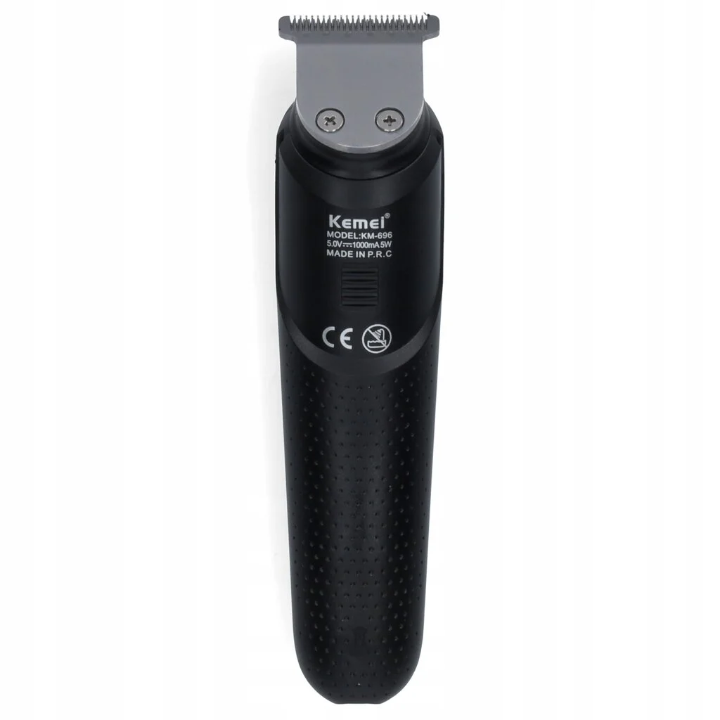KEMEI KM-696 – tai praktiška, universali plaukų ir barzdos kirpimo mašinėlė, skirta ne tik pagrindiniam kirpimui, bet ir kontūrų formavimui, nosies plaukelių šalinimui bei kūno plaukų priežiūrai. Prietaisas turi LCD ekraną, reguliuojamą pjovimo ilgį, keičiamos antgalius ir įkraunamą ličio jonų bateriją.