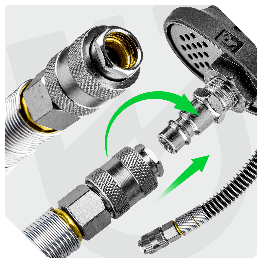 Dėl PVC gumos konstrukcijos lanksti žarna pasižymi papildomomis plastinėmis savybėmis, todėl nereikės jaudintis dėl kabelio susipainiojimo, kaip su įprastomis spyruoklinėmis žarnomis.