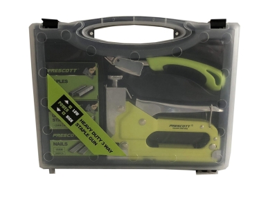 „Prescott PHPSU03“ 3 viename rankinis kablių pistoletas puikiai tinka tvirtinti izoliacines plastikines plėveles, kilimus ir kitus tvirtinimo elementus. Visi plieniniai korpusai ir mechanika yra profesionalūs produktai, skirti atsidavimui renovacijai, remontui, „pasidaryk pats“ ir hobiui namuose. Aukštos kokybės produktai, kuriais galite pasikliauti.