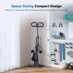 - Vietą taupantis dizainas: Mūsų novatoriškas sulankstomas jojimo treniruoklis yra išradingas visiems, norintiems mėgautis viso kūno treniruotėmis neužimant per daug vietos. Dėl vietą taupančio, sulankstomo dizaino jį galite lengvai laikyti namuose ar biure. Vos per kelias sekundes galite sulankstyti treniruoklį, kad jo dydis sumažėtų iki nedidelės dalies.