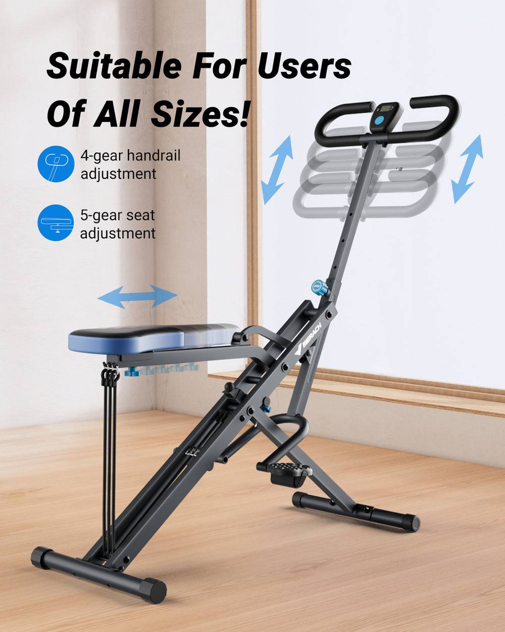 - Universalios rankenų padėtys: MERACH R07 pritūpimų irklavimo treniruoklio rankenos sukurtos taip, kad jūsų treniruotės būtų universalesnės. Naudodami įvairias rankenų padėtis, galite lavinti skirtingus raumenis ir lengvai bei užtikrintai atlikti įvairius pratimus. Ergonomiškas rankenų dizainas padidina komfortą ir padeda tinkamai atlikti pritūpimą, sumažindamas traumų riziką.