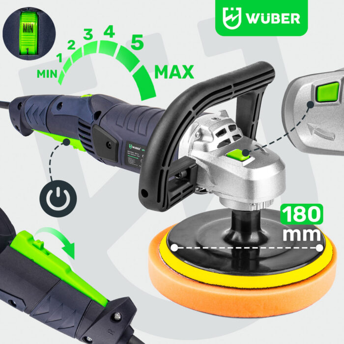 Galingas 2400 W variklis greitai ir tolygiai poliruoja automobilių paviršius, nepažeisdamas dažų.