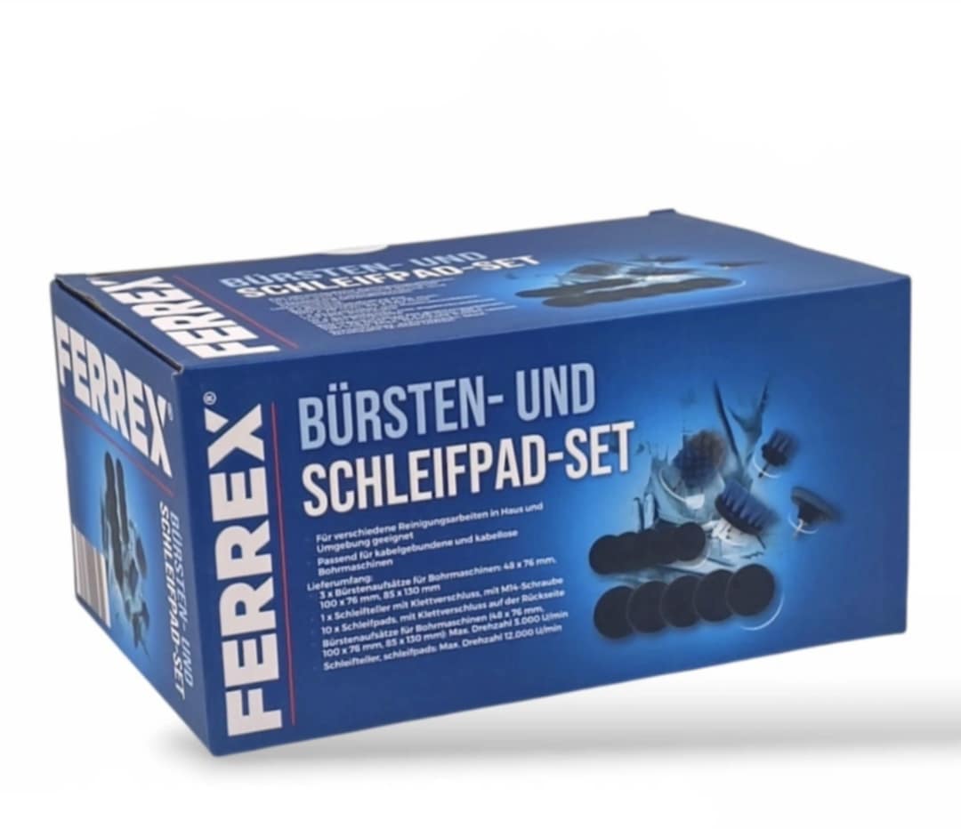 FERREX šepečių ir šlifavimo padų rinkinys – universalus sprendimas įvairiems valymo, paviršių paruošimo ir šlifavimo darbams. Rinkinys skirtas naudoti su elektriniais grąžtais, todėl idealiai tinka darbams namuose, dirbtuvėse ar garaže.