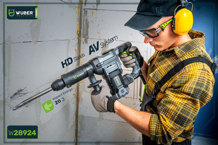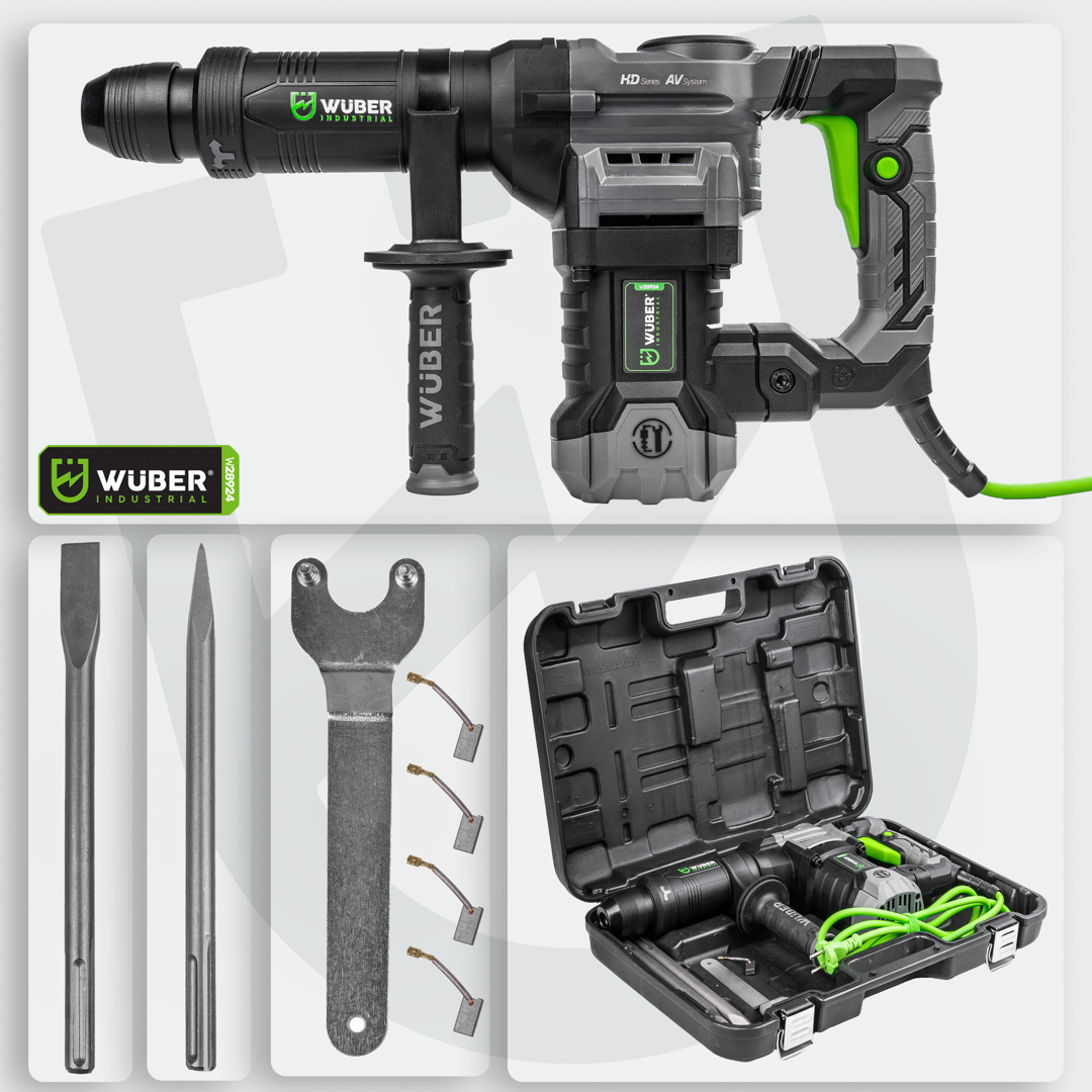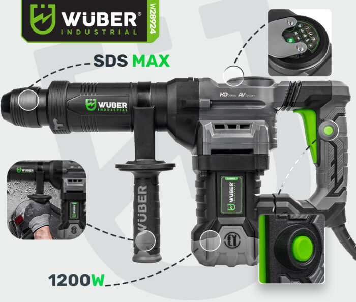 „Wuber“ griovimo plaktukas turi SDS Max galvutę, kuri leidžia greitai ir saugiai pritvirtinti didelius grąžtus ir kaltus.