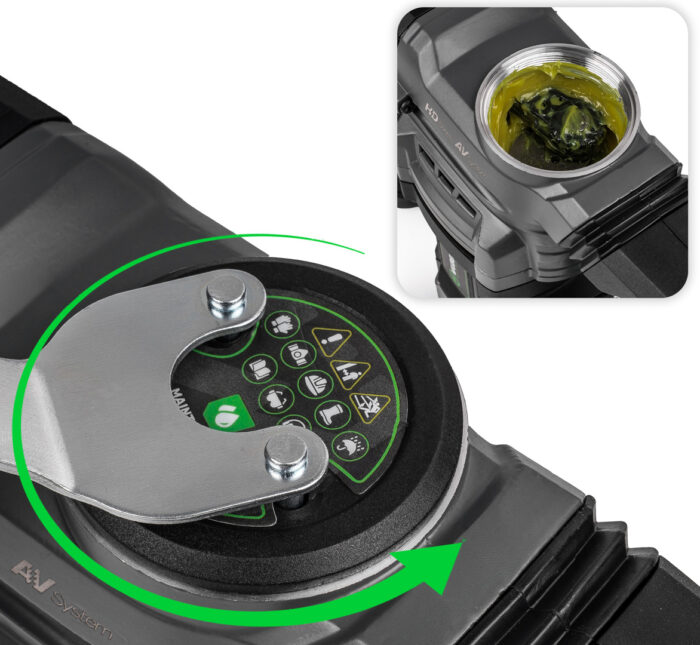 Pavarų tepimas žymiai pailgina įrankio tarnavimo laiką, o perkrovos sankaba užtikrina saugumą darbo metu.
