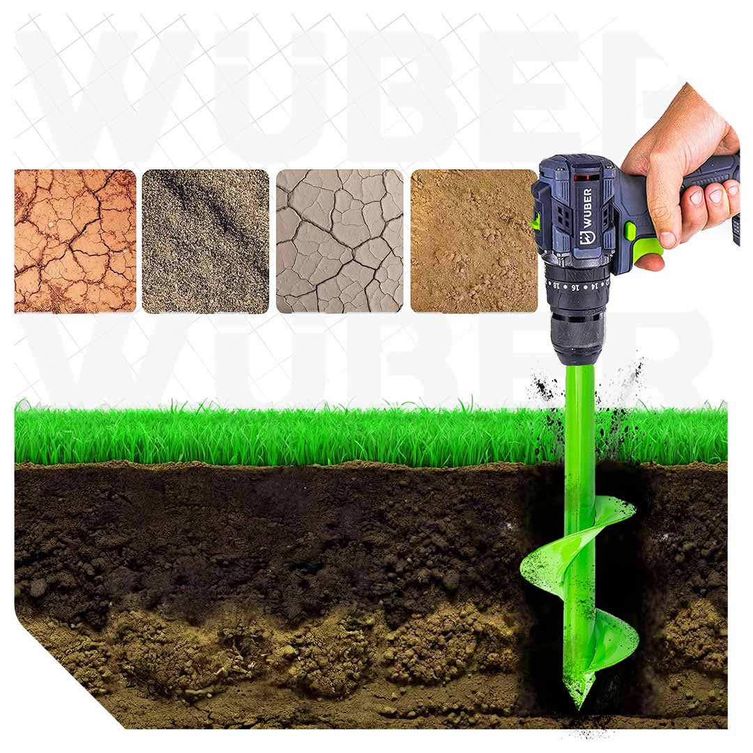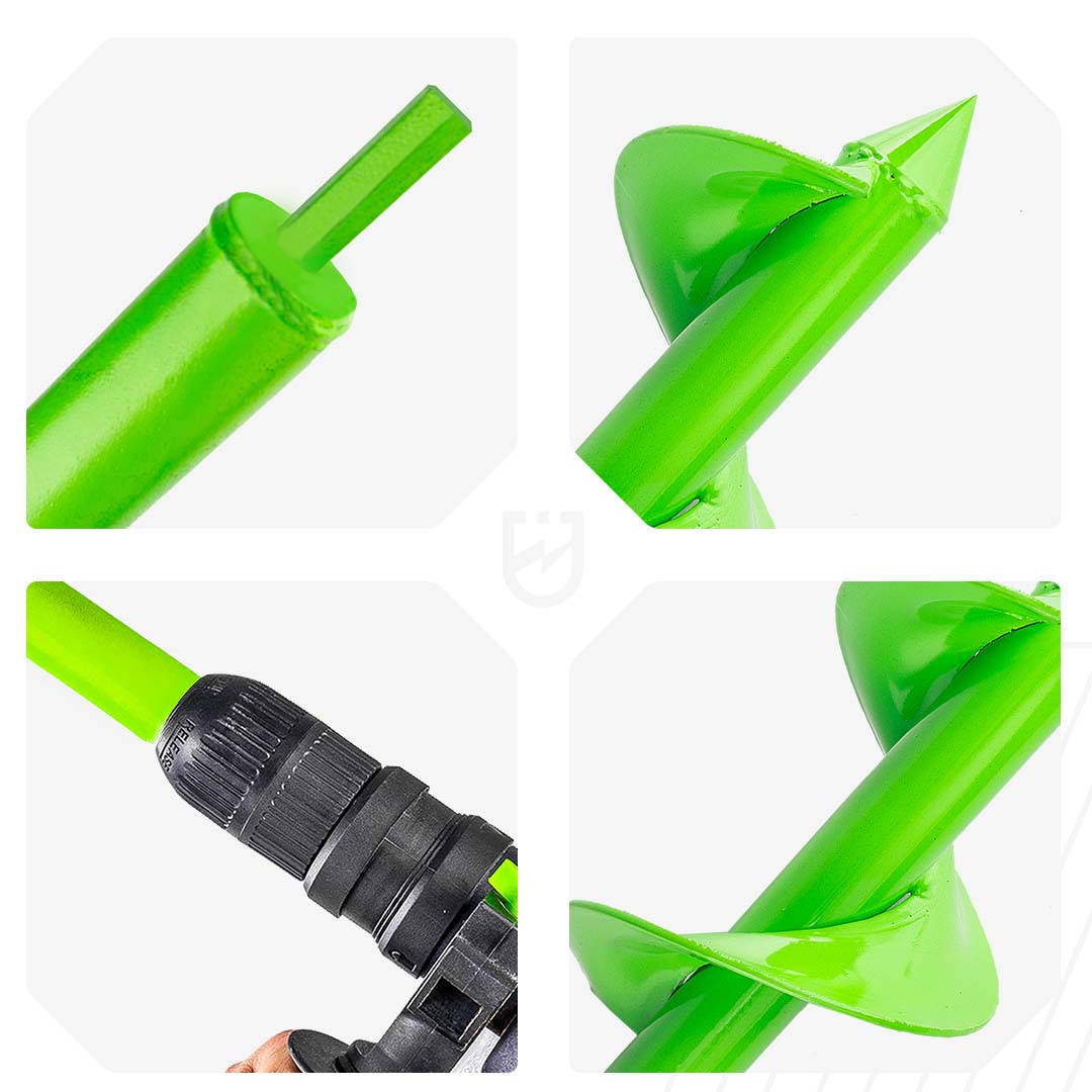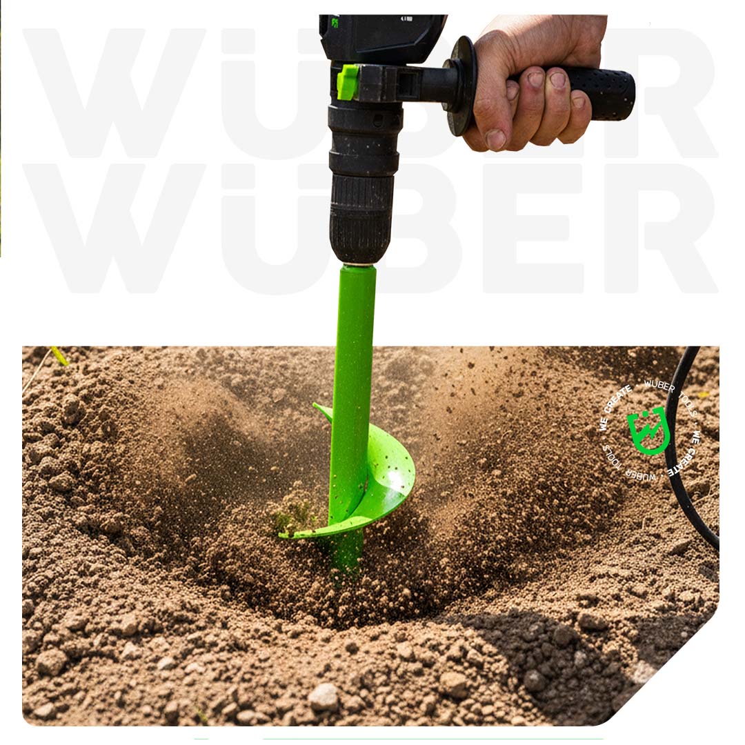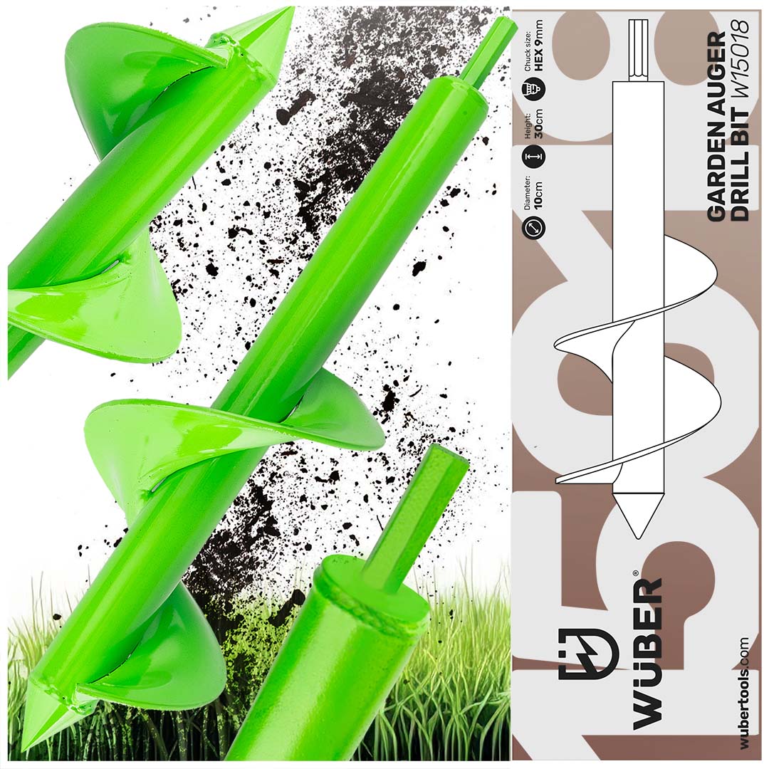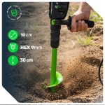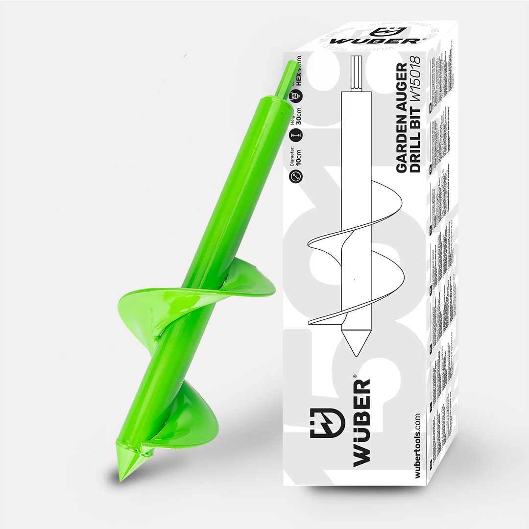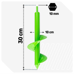 100 x 300 mm nerūdijančio plieno sodo grąžtas leidžia greitai ir tiksliai gręžti skyles žemėje augalų, svogūnėlių, krūmų sodinimui arba stulpų įrengimui.