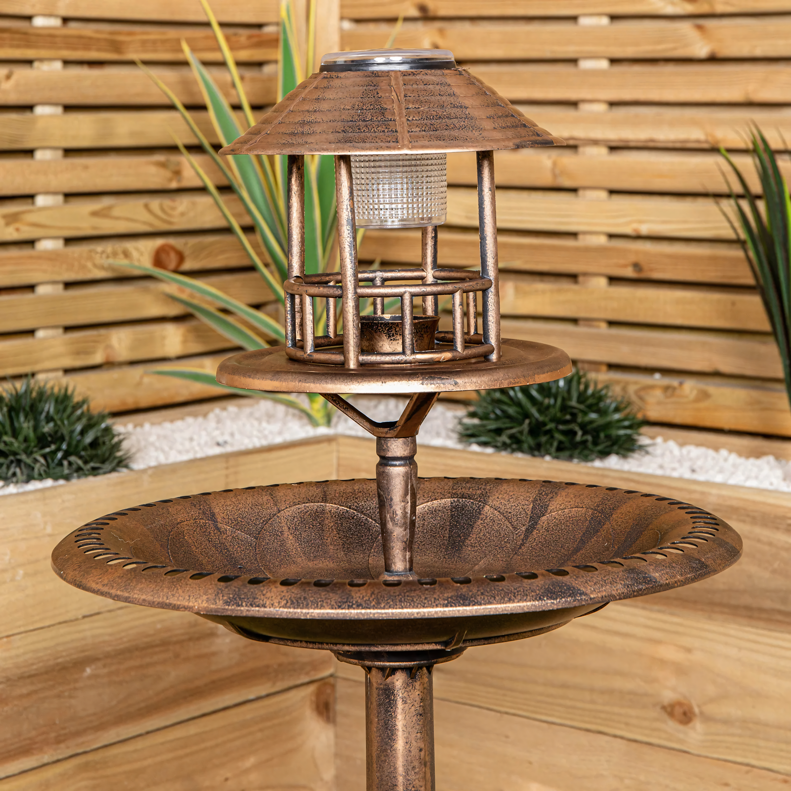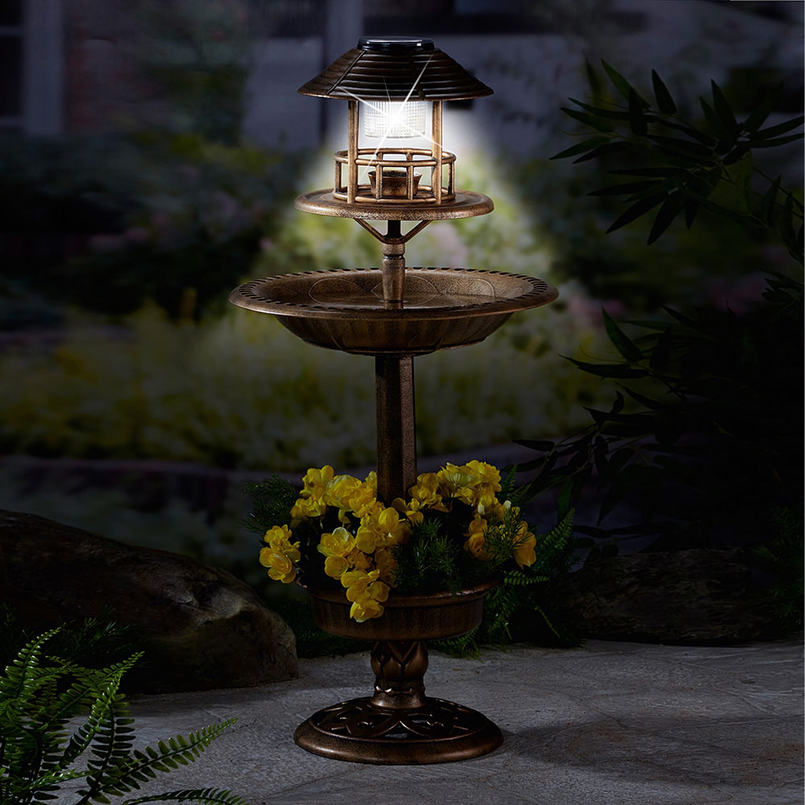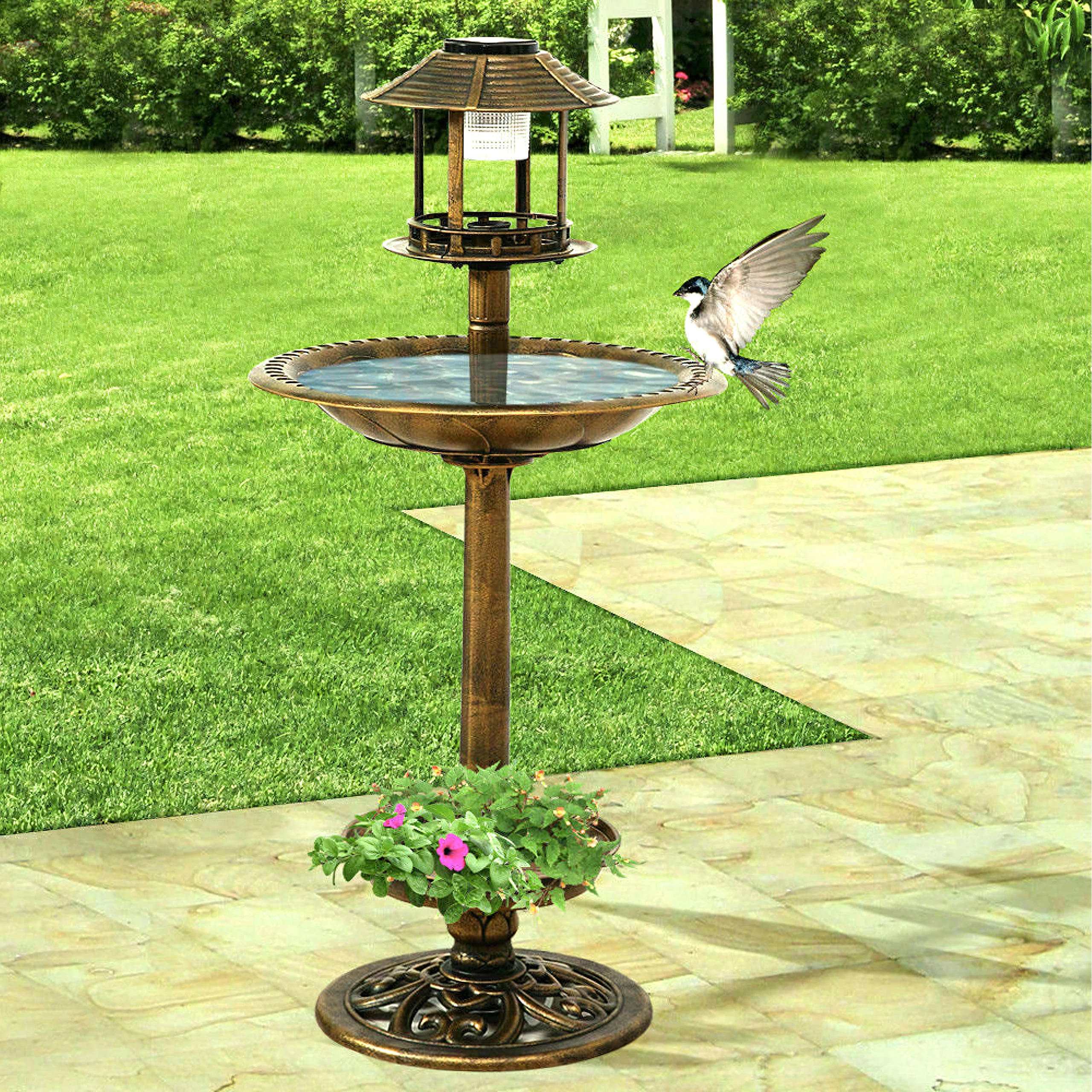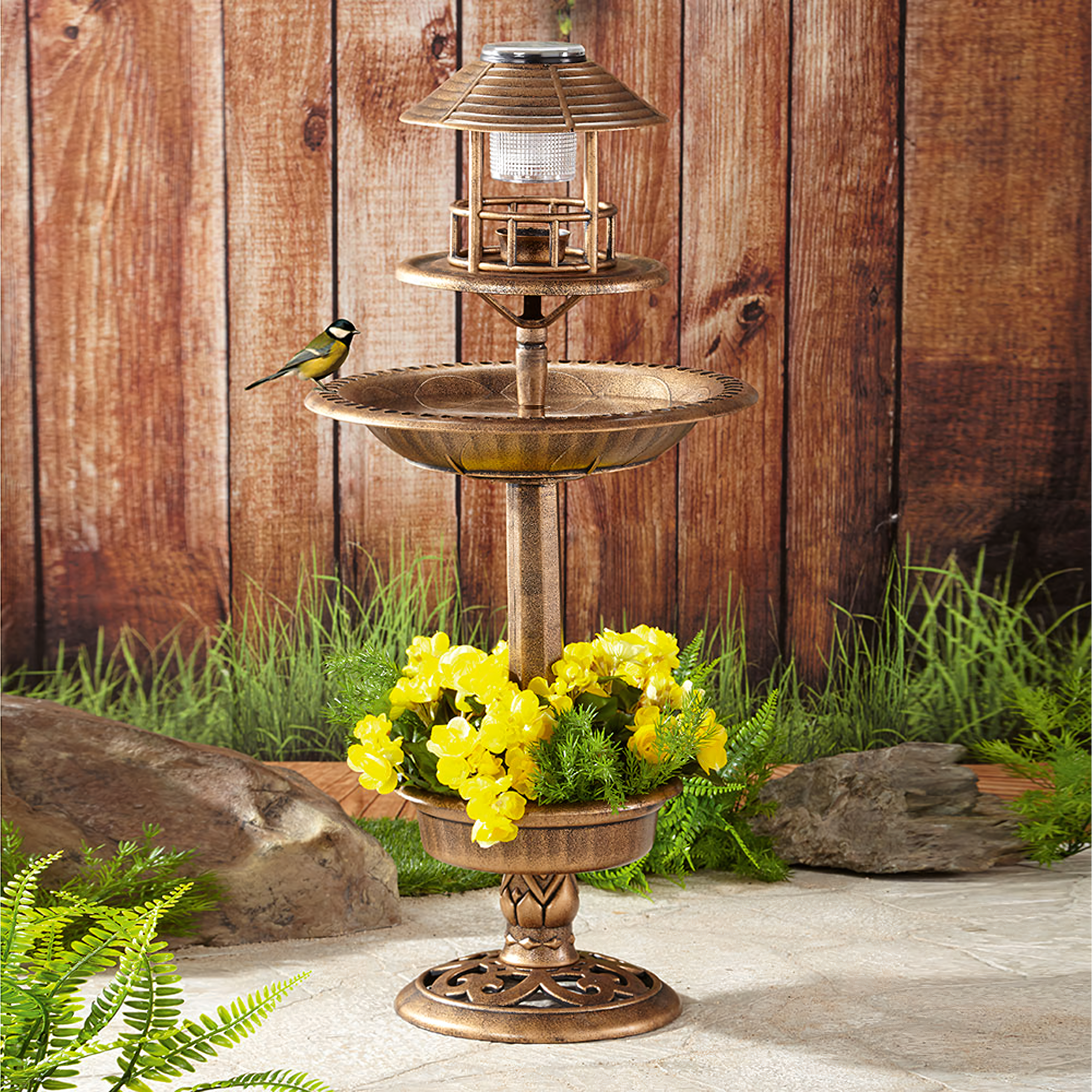 🕊️ 4 viename funkcija – lempa, lesyklėlė, paukščių maudyklė/vonielė ir apatinis augalų dubuo viename gaminyje.