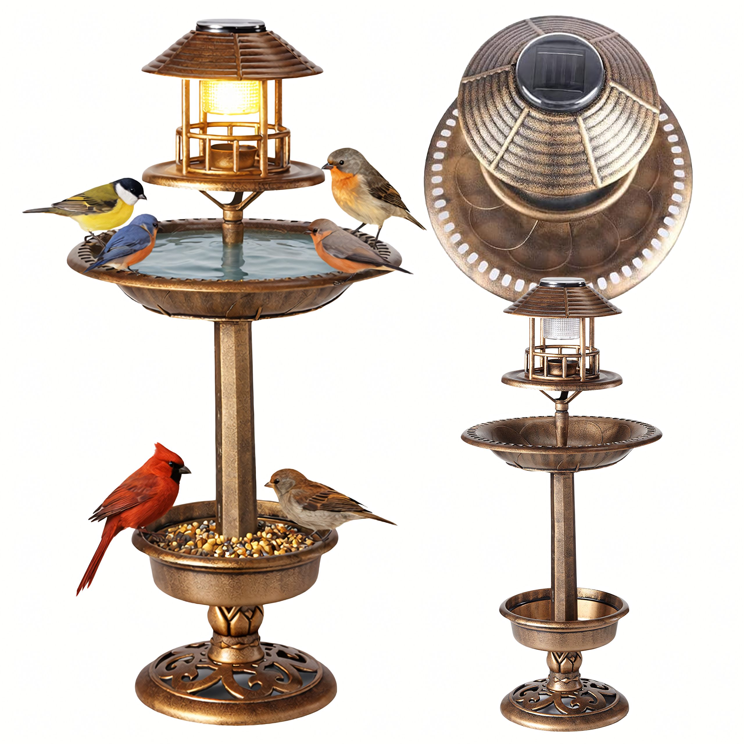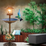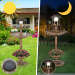 🕊️☀️💡 Sodo lempa su dekoratyvine saulės energija varoma LED paukščių lesyklė ir girdykla sodui🕊️☀️💡