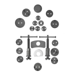 Komplektą sudaro du presai (pagal laikrodžio rodyklę ir prieš laikrodžio rodyklę), dvi skirtingų formų sijos presui pritvirtinti prie suporto balno ir 17 adapterių įvairiems stūmokliams. Preso rankenėlė turi magnetinį antgalį, kuris laiko adapterį, todėl darbas sudėtingomis dirbtuvių sąlygomis yra labai palengvintas. Visas įrenginys pagamintas iš aukštos kokybės plieno ir supakuotas tvirtame plastikiniame dėkle.