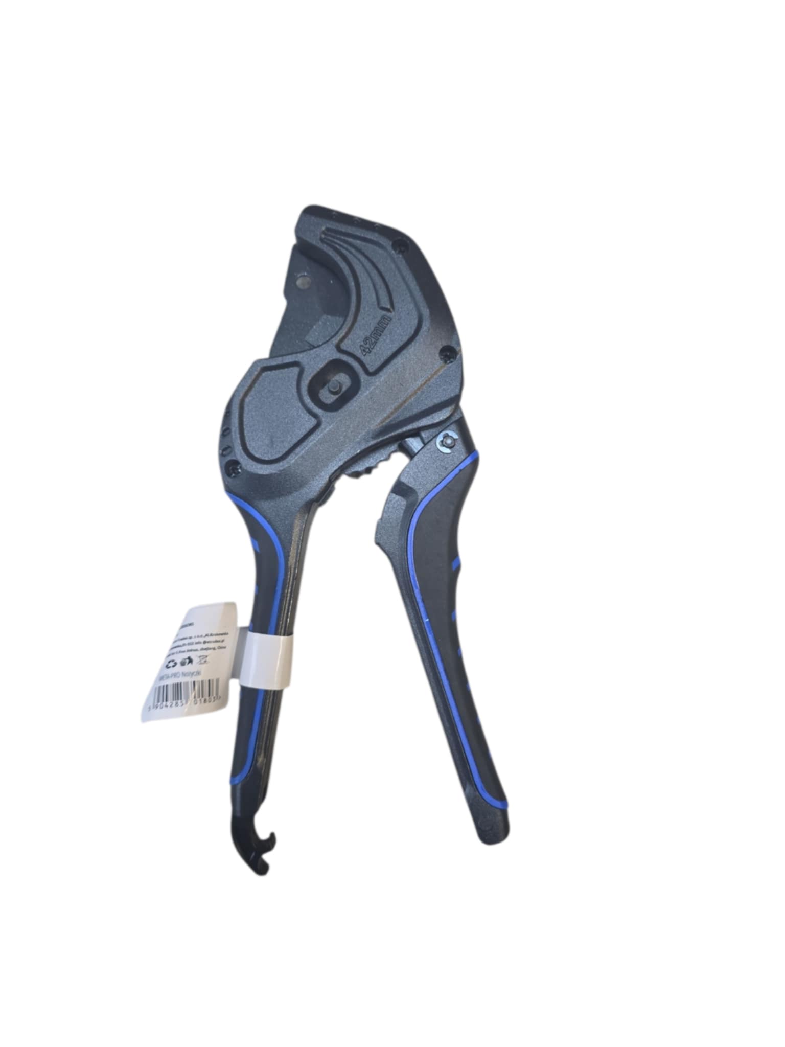 Pagrindinės Savybės ir Privalumai: ​Didelis Pjovimo Skersmuo: Įrankis skirtas pjauti vamzdžius iki 42 mm skersmens, tinka daugumai standartinių vandentiekio ir šildymo sistemų vamzdžių. ​Aukštos Kokybės Ašmenys: Aštrus, keičiamas ašmuo (matomas nuotraukoje) užtikrina švarų, stačią ir be atplaišų pjūvį, kas yra kritiškai svarbu kokybiškam vamzdžių sujungimui. ​Ergonomiškas Dizainas: Patogi, ergonomiška rankena su gumos intarpais (mėlynos spalvos akcentai) užtikrina tvirtą sugriebimą ir sumažina nuovargį ilgiau dirbant. ​Patikimas Mechanizmas: Naudoja reketinį (ratcheting) mechanizmą, leidžiantį lengvai ir be didelių pastangų perpjauti net didelio skersmens vamzdžius, suspaudžiant rankeną kelis kartus. ​Ilgaamžiškumas: Tvirtas korpusas ir kokybiškas mechanizmas užtikrina ilgą įrankio tarnavimo laiką net intensyviai naudojant. ​Fiksavimo Galimybė: Įrankio rankenos gale yra kablio formos elementas, skirtas patogiam pakabinimui ir galbūt saugiam užfiksavimui.
