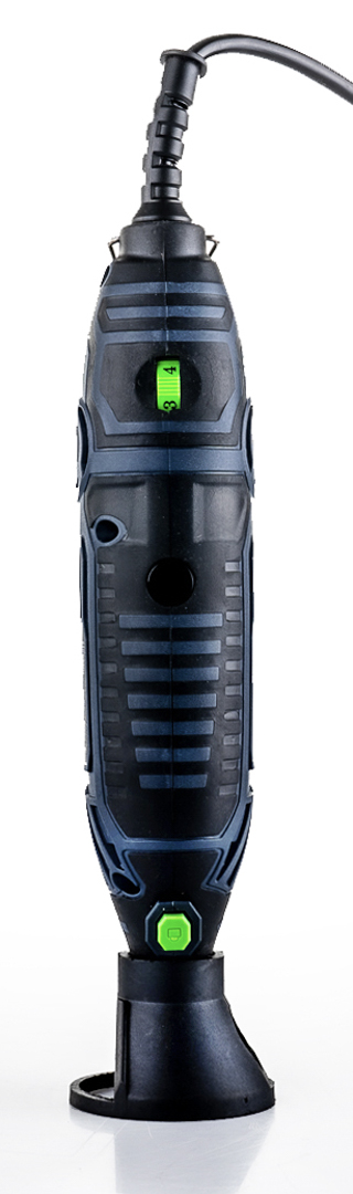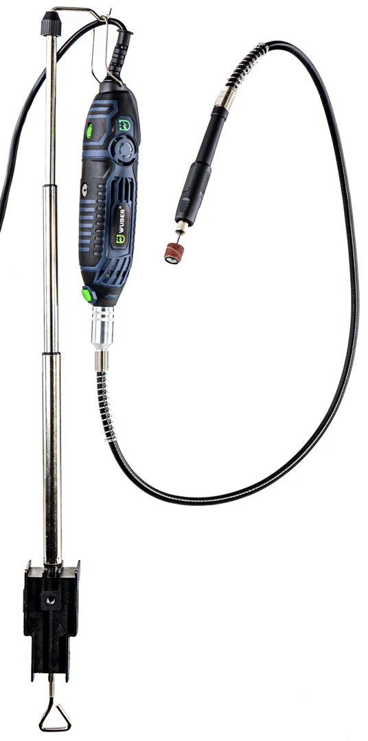 Įrankis komplektuojamas su stovu ir lanksčiu velenu, kurie žymiai supaprastina užduotis ir padidina darbo laisvę.