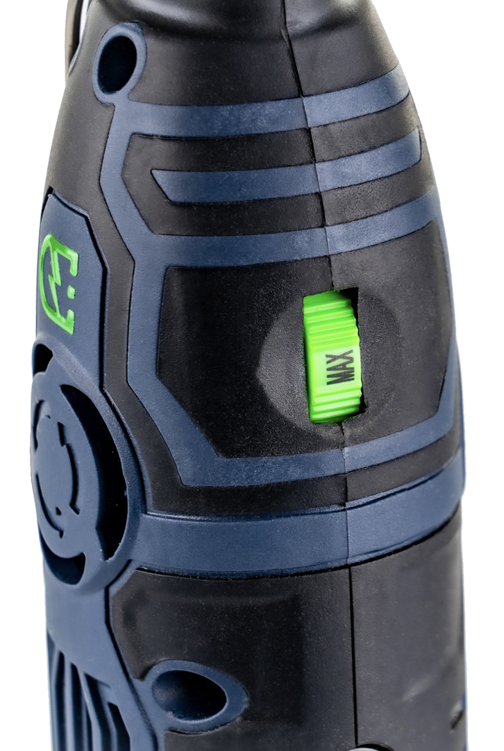 Tolygus greičio reguliavimo rankenėlė leidžia reguliuoti greitį pagal apdorojamą medžiagą.