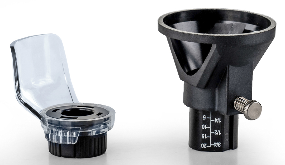 Reguliuojamo aukščio kreipiklis palengvina manevravimą ant lygių paviršių ir leidžia nustatyti apdirbimo gylį.