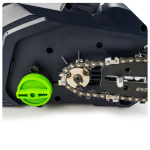 Grandinės įtempimo sistema be įrankių leidžia greitai ir lengvai reguliuoti grandinės įtempimą, taip padidinant darbo komfortą.