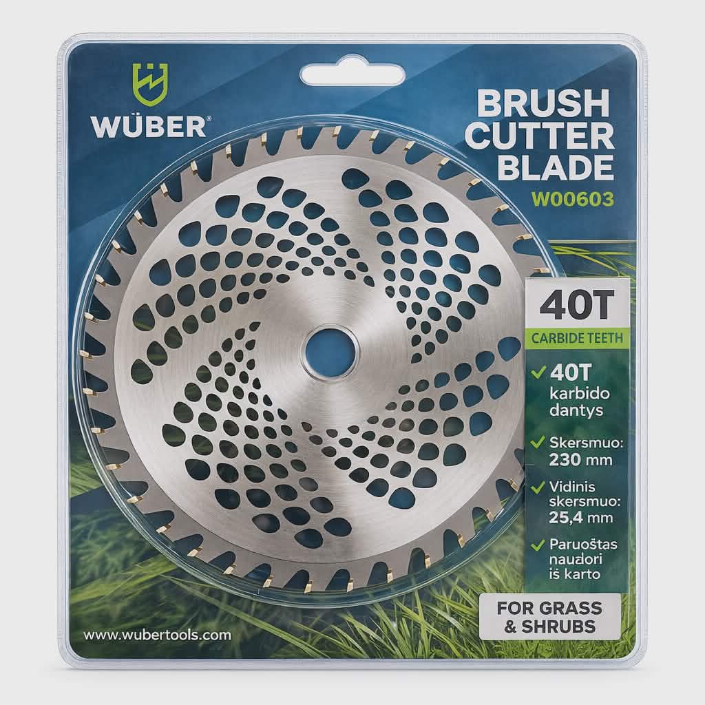 Patikimas ir itin efektyvus WÜBER pjovimo diskas su karbido dantimis, skirtas intensyviam žolės, piktžolių ir krūmų pjovimui. Dėl sustiprintos konstrukcijos ir aštrių 40 dantų, diskas lengvai susidoroja net su storesne augmenija.