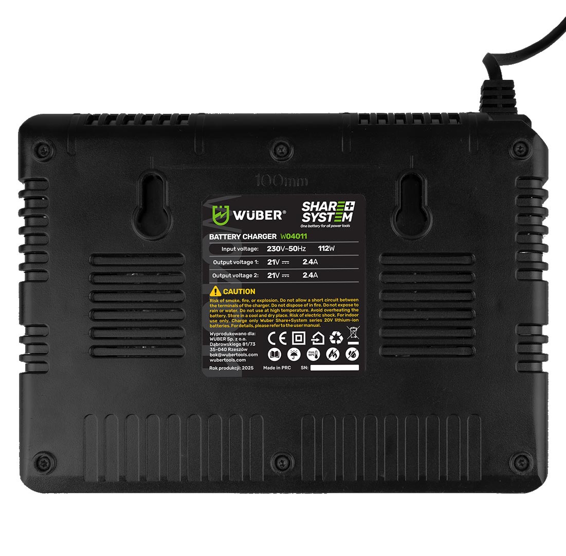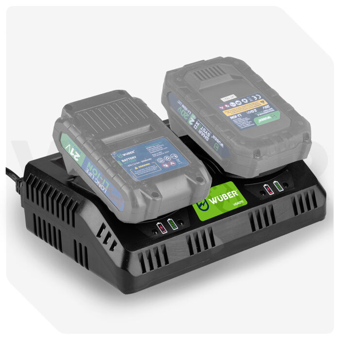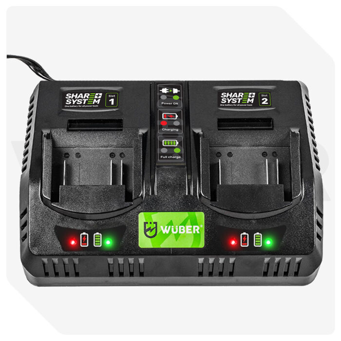 WUBER Share+ sistemos 21 V dvigubas akumuliatorių įkroviklis W04011