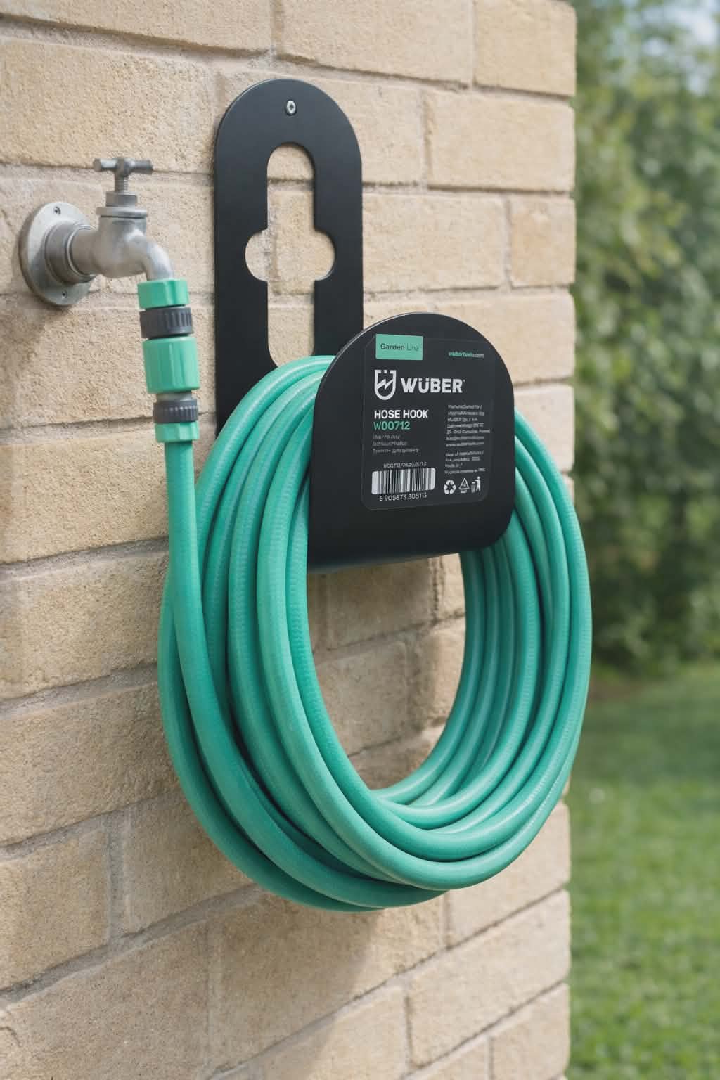 Patogus ir tvirtas WÜBER žarnos laikiklis, skirtas tvarkingam sodo žarnos laikymui. Montuojamas prie sienos – leidžia lengvai suvynioti žarną ir išvengti susipainiojimo ar pažeidimų. Puikus sprendimas kiekvienam kiemui ar sodui.