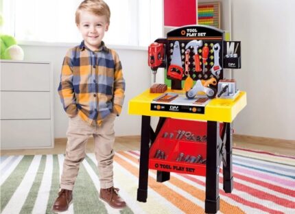 Vaikų dirbtuvėse skatinamas kūrybiškumas, loginis mąstymas ir tvarka. Savybės: Žaislas pagamintas iš saugaus, tvirto plastiko ir primena tikrą darbastalį; Rinkinį